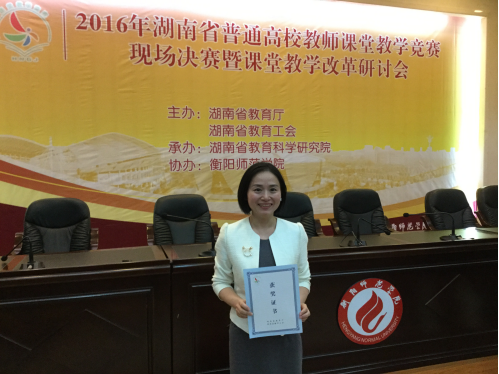 2016年湖南省高校教师教学竞赛中悟空体育管琼老师以全省第一名成绩获工科组一等奖
