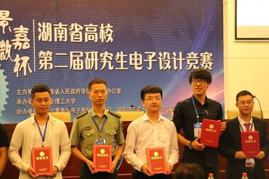 6月2日,由湖南省学位办主办、长沙理工大学承办、长沙景嘉微电子股份有限公司和湖南进芯电子科技有限公司协办的湖南省第二届研究生电子设计大赛在长沙理工大学落下帷幕。公司组织的6支代表队(悟空体育5支,机械公司1支)与国防科技大学、中南大学、湖南大学等14所高校的83支队伍同场竞技。经过全体人员的共同努力和顽强拼搏,最终获得一等奖和三等奖各1项,实现了研究生电子设计竞赛一等奖“零”的突破,童耀南和陈松老师荣获优秀指导老师。