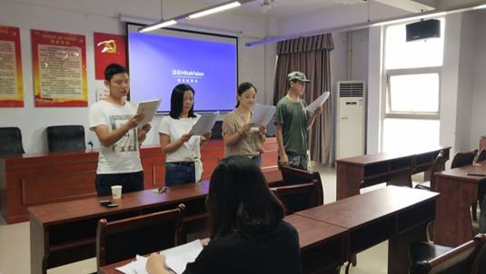 9月17日16时,悟空体育“我和我的祖国”师生朗诵活动第一次排练在16410举行。