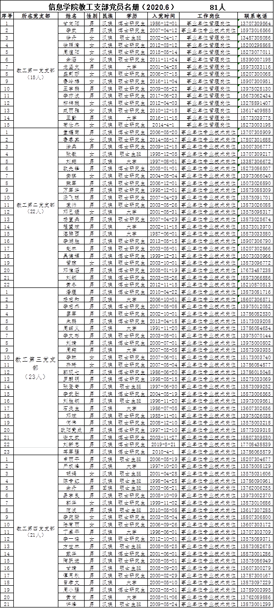 悟空体育教工支部党员名册