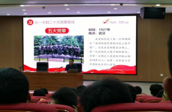 为帮助入党积极分子学习掌握党的基本理论和基本知识,了解建党以来的党章发展历程,端正入党动机,张国云以时代为背景,以现实要求为引子,深入浅出地为同学们解读党章,带领同学们从党的一大到党的二十大看党的发展,强调党章、党规的重要性。