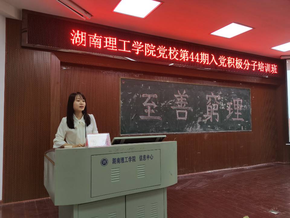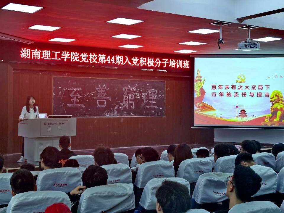 5月6日12:30,由悟空体育承办的校第44期入党积极分子培训班第三讲在6栋学术报告厅顺利举行。本次党课由校党委组织部专职组织员龙颜主讲,院员工党支部书记王学鹏主持,全体入党积极分子参加。