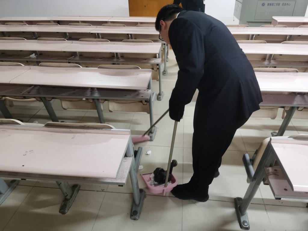 本次党员义务劳动的主要内容是清扫自习室卫生。同学们在院组织部的带领下,纷纷拿起清洁工具,打扫清理自习室的每一个角落。经过近一个小时的卫生清扫,自习室各处的纸屑、灰尘都被清扫干净,自习室变得焕然一新。
