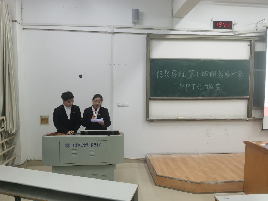 4月27日19:00,信息学院承办的校第十四期发展对象培训班学习汇报会在15317顺利举行,会议由院员工分会学习纪检部谭志邦主持,全体发展对象参加。