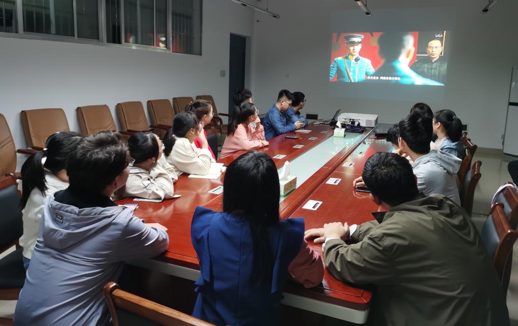 全体党员在会议室认真观看中国共产党建党影片——《建党伟业》。该片记录了1911年辛亥革命爆发开始至1921年中国共产党第一次全国代表大会召开为止10年间中国所发生的一系列重大历史事件,讲述了毛泽东、李大钊、陈独秀等第一批中国共产党员为中心的风云人物在风雨飘摇的时代中为国家赴汤蹈火的故事。