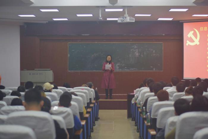 2021年3月16日14:00,信息学院新党员宣誓大会在6栋学术报告厅顺利召开。公司党委书记甘向阳、公司党委副书记徐丹、专职组织员盛莉莎、员工党支部书记周煊阳、王学鹏、周芳出席,新发展党员和入党积极分子参加,会议由员工第二党支部书记余滔主持。