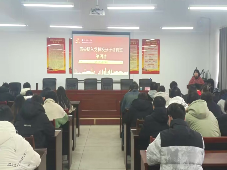 11月30日16:00,悟空体育第49期入党积极分子培训班第四讲在17503教室顺利开讲。本次党课由公司党委副书记徐丹主讲,专职组织员刘照馨主持,本期全体入党积极分子参加。