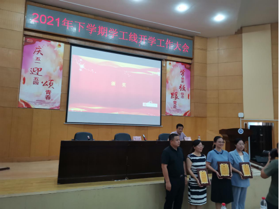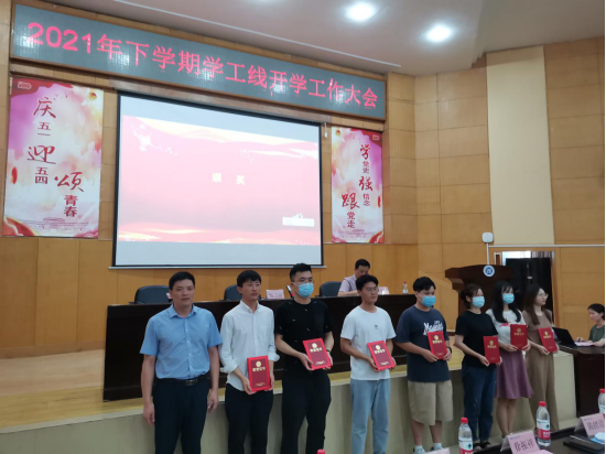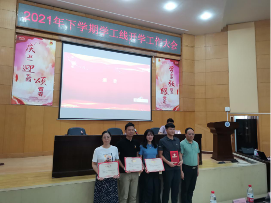 辅导员柳祎璇(左三)、王学鹏(左二)荣获优秀个人三等奖