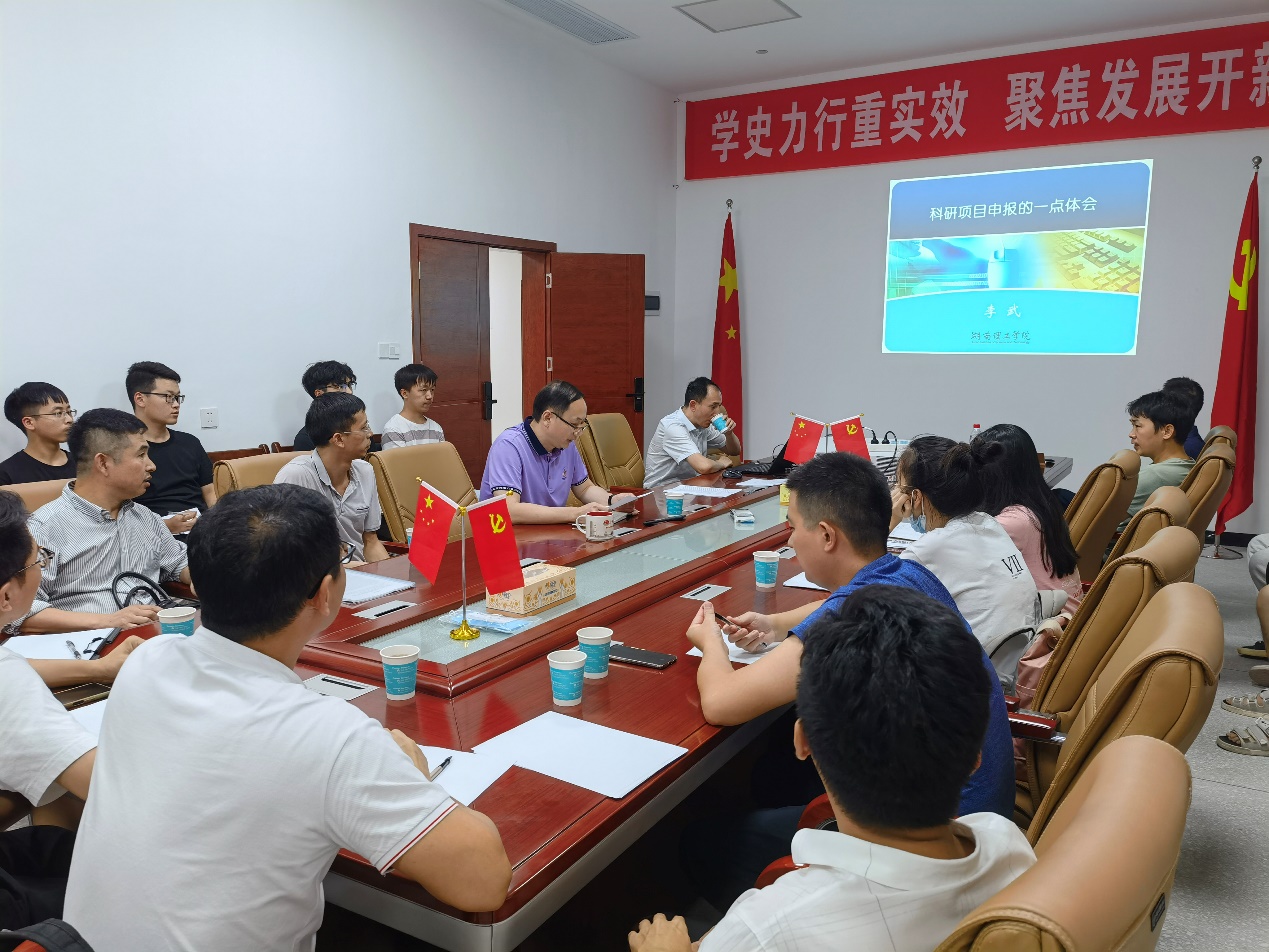 会上,邓惟滔、刘立志、孙树平等三位博士先后就自己的项目申请书与在座的各位老师进行了充分交流,李武教授从项目选题、立项依据、创新点等方面进行了有针对性的指导。