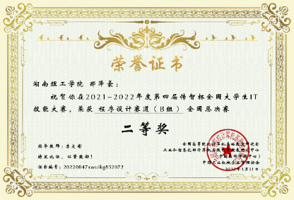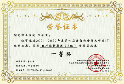 近日,悟空体育计算机类专业本科员工阳金里、李居航、李维逸等在2021-2022年度第四届“传智杯”全国老员工IT技能大赛全国总决赛中荣获国家一等奖3项、二等奖2项、优秀奖1项。