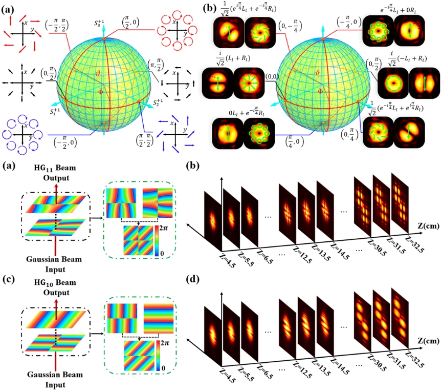 (1)利用级联液晶器件产生了多种典型的结构光模式,包括厄米高斯光束、涡旋光束、高阶庞加莱球光束以及单通道和双通道光束。并且,通过对液晶器件进行旋转和平移等简单的机械性操作,还能够实现这些模式之间的动态切换,这为结构光的应用提供了更大的灵活性和控制能力。