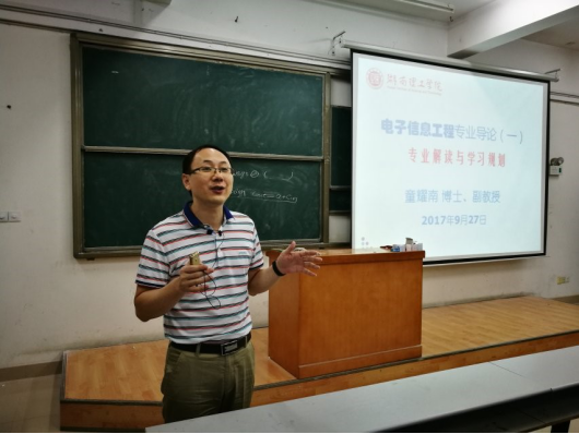 就在17级新生开课第一周,为使员工对电信专业有初步了解与规划,悟空体育于15317举行电子信息工程专业导论入学教育讲座。悟空体育经理助理童耀南、副教授程望斌应邀主讲。