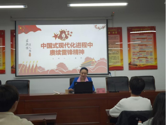 随后,潘昕以“中国式现代化进程中赓续雷锋精神”为主题展开培训授课。她从雷锋精神的“形成起因”切入,结合时代背景阐释其诞生的历史必然性;通过鲜活案例解读雷锋精神蕴含的“道德力量”,彰显其跨越时空的精神价值;深入剖析雷锋精神与社会主义核心价值观的内在联系,点明其承载的“共同价值”;最后围绕“守正创新”,强调新时代青年应在传承中发展雷锋精神,将精神力量转化为实践行动。授课尾声,《学习雷锋好榜样》这一熟悉的旋律回荡在教室,进一步深化了同学们对雷锋精神的理解与认同。