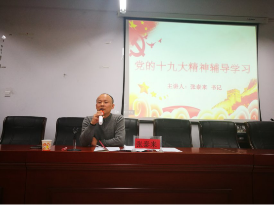 为学习宣传党的十九大会议精神,2017年12月18日下午两点半,公司党支部书记张泰来教授于16410为公司第37期近80名入党积极分子作关于“党的十九大精神辅导学习”的党课培训讲座,公司全体辅导员参加,讲座由刘盈盈老师主持。