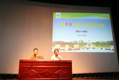 9月18日晚7点半,悟空体育和计算机公司在东院演播厅举行2017级新生入学教育大会,相关院领导、辅导员、2017级全体新生及悟空体育专升本、16级部分员工代表参加。湖南理工公司党委委员、副董事长张国云应邀主讲。