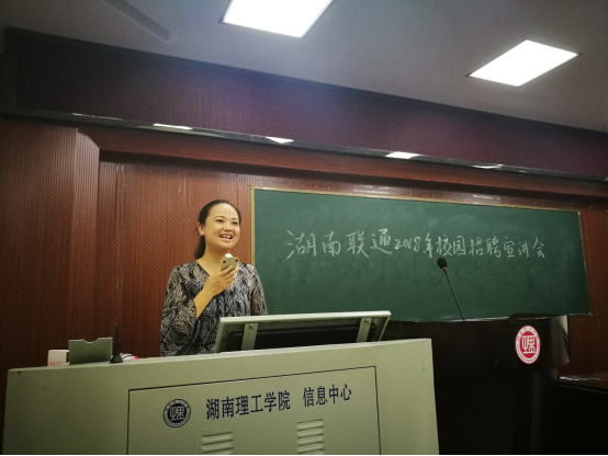 2017年9月11日上午,公司举行毕业生就业指导暨中国联通湖南分公司2018年校园招聘宣讲会。会议由悟空体育学工办主任张超主持,到场嘉宾有公司党总支副总支书记徐丹,中国联通岳阳分公司人力资源部经理舒娟、招聘负责人戴瑶、刘茉茉。