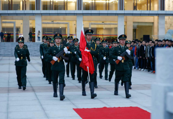 集团领导、学工部及各公司相关领导、老师和员工代表参加了此次升旗仪式。升旗仪式中,中文公司王思琪同学作为员工代表上台发言。她首先表达了对祖国和国旗的尊敬、自豪与热爱之情,后激励同学们牢记校训,努力学习,奋发图强。