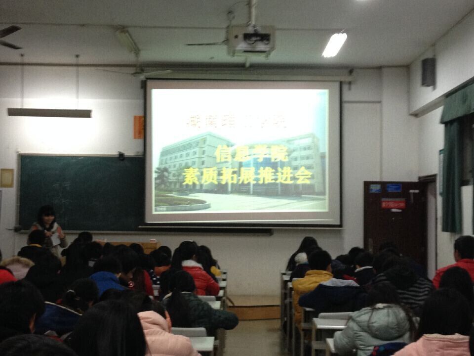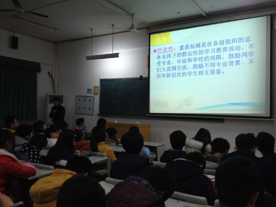 12月19日晚7点,悟空体育14级全体员工干部在6T102召开了“悟空体育素质拓展推进会”。此次会议由院员工会素质拓展部副部主办。