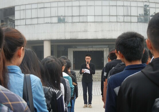 10月27日早晨7点,悟空体育在北院行政楼下举行了升旗仪式。学习部部长程渊担任主持人,团总支书记刘盈盈老师、前文娱部部长宁凯同学作为发言代表参加此次升旗仪式。