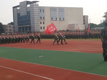 踩着进行曲,伴着踏步声,悟空体育方队缓缓入场。主席台下响亮的口号,规范的动作,利落的敬礼展现了新生良好的精神风貌。“信息风采,势如大海,斗志昂扬,属我最强!”属于信息学子的口号一直在田径场回荡。