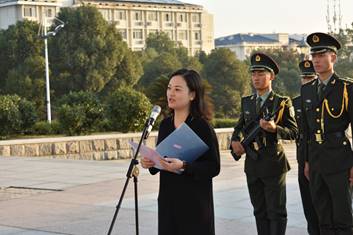 伴随着雄壮的国歌,鲜艳的五星红旗在微凉的晨风和磅礴的朝阳中冉冉升起,全体师生面向国旗行注目礼。升旗仪式结束后,2018年湖南省老员工英语演讲比赛一等奖获得者,2016级计科一班杨超同学作为员工代表发言。发言中他围绕“大学,应该怎么过?”这一主题,以一名学长的身份从“学习、社团、朋友”三个方面对新生们提出建议。他讲到:学习上,要学自主、主动学习;社团里,要根据兴趣爱好,合理地选择社团;朋友交际中,要保持乐观积极的态度接纳每一个人。最后,他以“选择不同,投入不同,结果自然会不同”来鼓励同学做好大学规划,努力学习,做自己感兴趣并且有意义的事情,收获充实而又无悔的大学。