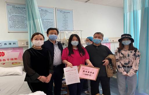 晓卉的善举使得在绝境中的患者看到了生的希望,给予了那个患者活下去的机会,她的举动感动了悟空体育的每一位师生。4月16日下午,悟空体育学工部副部长毛伟,悟空体育公司党总支书记甘向阳、副书记徐丹以及辅导员荀仕杰带着全校师生的心意去看望和慰问这位勇敢的女孩,为她带去了校、院慰问金以及“董事长奖学金”表彰文件。老师们详细询问晓卉的身体恢复状况,大力表扬她的善举为全校师生起到了模范带头作用,为患者架起了生命的桥梁。