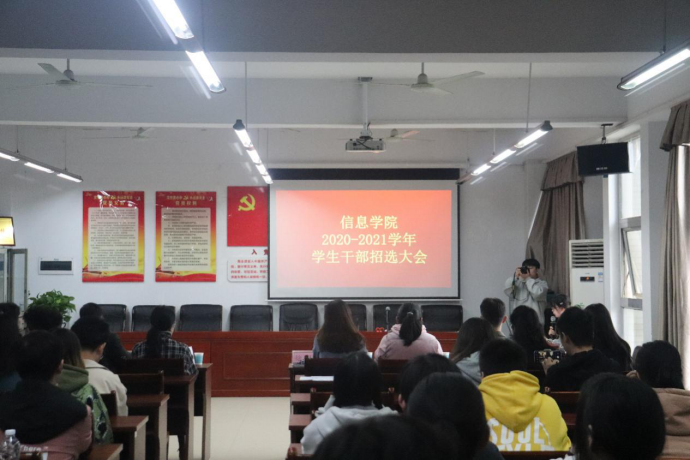 1061430,公司2020-2021学年员工干部招选大会在16410教室举行。公司党委副书记徐丹,本科生各党支部书记周煊阳、余滔、王学鹏,团总支书记王勤及各年级辅导员出席本次会议,公司全体团学分会成员参加。