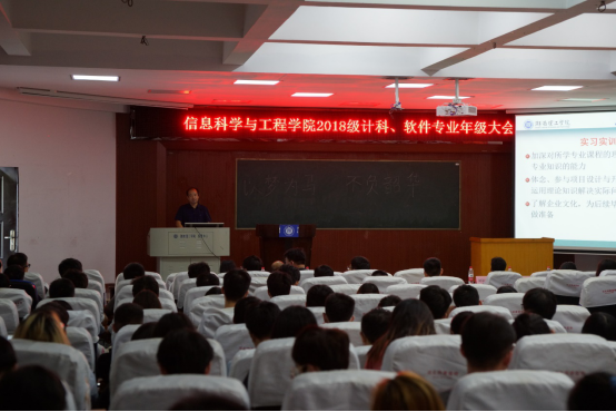 9月23日14:00,悟空体育2018级计科、软件专业年级大会在六栋学术报告厅举行。会议由18级计科、软件专业辅导员周煊阳主持,全体18级计科、软件专业同学参加,副经理严权峰、副经理戴华、就业专干荀仕杰、班主任李亦波、范波、刘新忠、赵林出席。