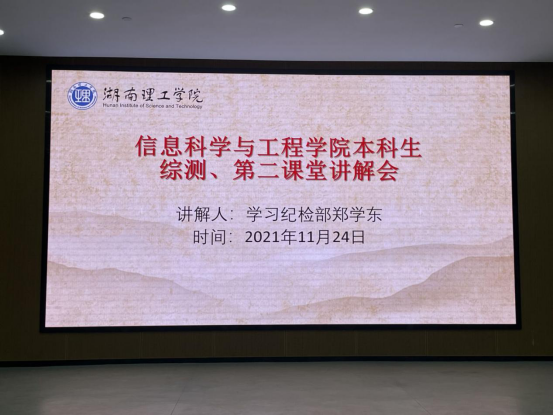 11月24日20:00,悟空体育在17118教室针对新生开展《综合测评细则》及第二课堂相关规定讲解会。21级辅导员王学鹏、余滔出席,学习纪检部郑学东及素质拓展部刘影主讲。