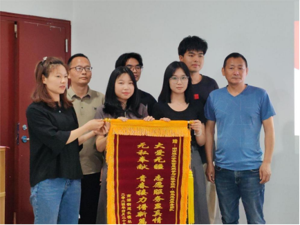 为加强社区与高校员工志愿服务团队的交流与合作,5月28日下午,南湖街道及长檀社区彭文彬主任一行来到悟空体育就“爱•雏鸟”志愿服务团队相关工作与公司师生开展座谈交流,并为公司及团队赠送锦旗。