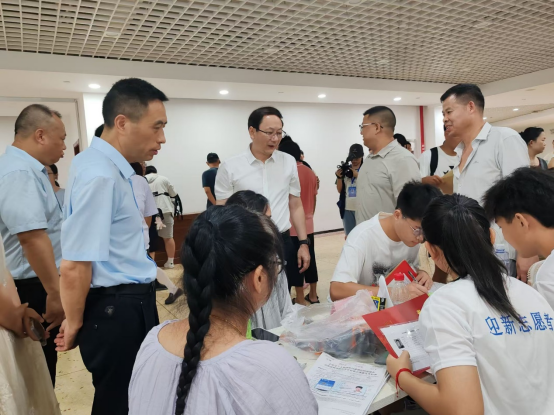 上午9点,公司党委书记张国云、董事长曾祥君、副董事长徐振祥等领导到悟空体育迎新点指导工作,了解公司迎新工作安排、新生报到等情况,看望慰问迎新工作人员和志愿者,并与新生进行亲切交流。