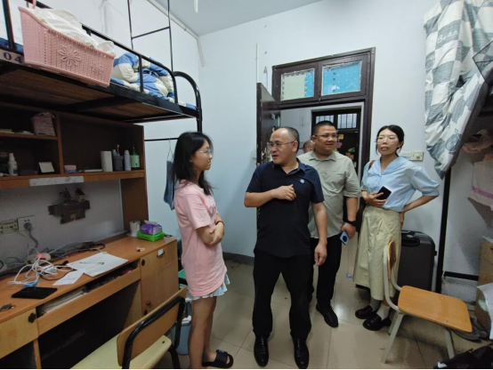 在走访过程中,肖迎群和付亚子亲切的和同学们交谈,询问大家对于新环境的适应情况,关心同学们的生活起居,从住宿条件到饮食,事无巨细,并提醒同学们谨防诈骗,提高警惕,保护好个人财产。