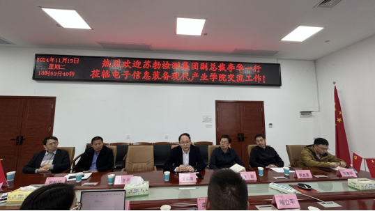 为充分发挥公司与企业双方优势,加强产学研合作交流,11月19日10:30,电子信息装备现代产业公司在17517会议室与江苏苏勃检测技术服务有限公司开展产学研合作对接洽谈,苏勃检测副总裁李华、财务总监柴静出席。悟空体育经理童耀南、机械公司副经理张敬、悟空体育副书记付亚子、南湖公司党总支书记喻立平、教师刘嘉明、谢文武、郭龙源、罗朝明、李茜铭,就业专干徐壮出席。