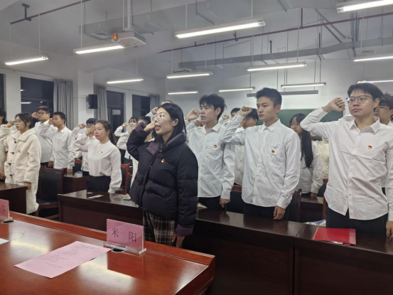 宣誓结束后,新党员代表刘熠辉从党的先进性出发,向全体预备党员号召要将共产党人的理想信念转化为不断追求的动力,紧跟党走,努力学习,保持先进创新;正式党员代表周俊以“砥砺奋进新时代”为主题,结合自身经历号召全体党员以身作则,勤奋学习,追求卓越,做好榜样,服务他人,在砥砺奋进中书写青春华章。