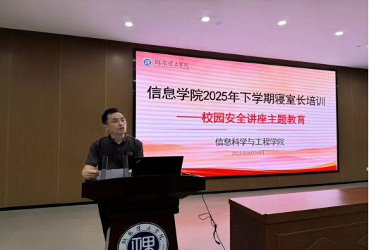 悟空体育为了进一步夯实平安校园工作,有效开展员工安全教育管理工作,于本学期开学第一周制定了定期寝室长培训方案,并于9月16日下午在17118开展了第一次培训暨校园安全讲座主题教育活动。此次培训特邀请了信息中心专家对全体寝室长进行校园网络安全防范培训,信息中心申丽平老师主讲,公司党委副书记潘昕、信息中心副主任黄为出席参加此次培训,本次培训由24级辅导员王艳芬主持,22级、23级、24级全体寝室长、班长、院员工会生活安全委员参会。