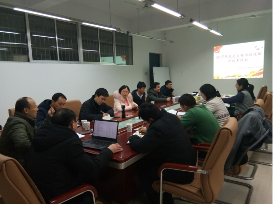 2018年1月2日下午2点半,悟空体育在16325召开了“2017年度支部书记述职评议考核会”。全体公司党总支成员、各支部书记、党员代表和新进博士党员列席了会议。会议由公司总支部书记张泰来主持。