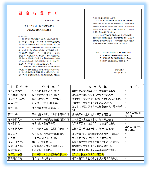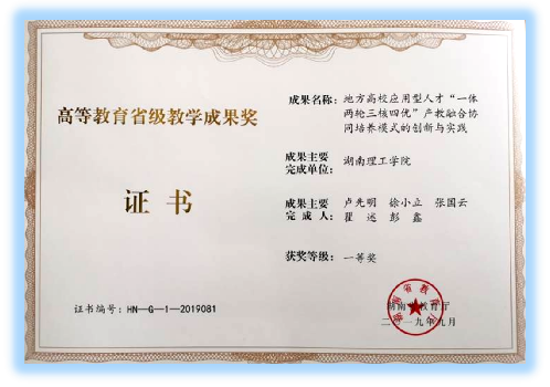 2013年,由公司张国云、丁跃浇、李武、陈松等教师主持完成的“地方本科院校电子信息类专业工程应用型人才多元协同培养模式的研究与实践”项目获第十届湖南省高等教育省级教学成果二等奖。该成果表明了我经理期坚持地方性、应用型办学定位的准确性,充分肯定了公司在高素质工程应用型人才培养方面的成绩。