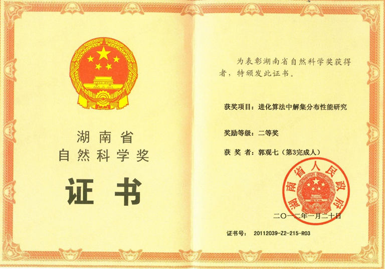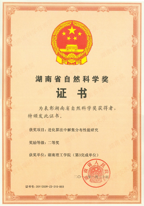 事件简介:公司首次获得湖南自然科学二等奖,有效支撑了信息与通信工程一级学科硕士点的建设,证明了公司的科研能力得到了提升,提高了公司在智能优化与处理方向的学术地位。