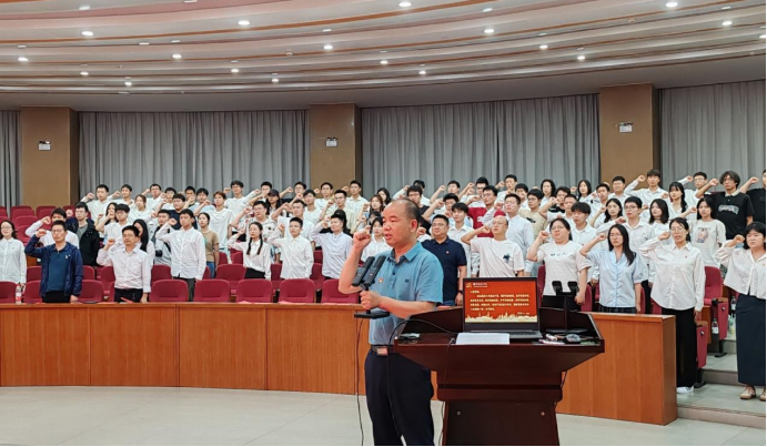 讲座结束后,全体毕业生党员在公司副经理严权峰教授的带领重温入党誓词;公司党委副书记付亚子宣读公司党委《关于表彰公司2024届优秀毕业生党员的决定》,向公司12名优秀毕业生党员同志表示祝贺;公司领导为受表彰同志颁发荣誉证书,并合影留念。